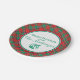 Placas personalizadas de papel con un borde de un patrón clásico de Navidades chapado en rojo brillante y verde marino, con acentos reales de oro azul y amarillo. Elija entre dos tamaños. Ideal para intercambios de galletas y otras fiestas de vacaciones. Se ofrecen toallas y galletas de papel similares.