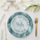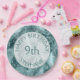 Di "Feliz cumpleaños" con un plato de papel personalizado. El fondo es arte digital creado para asemejarse a tela metálica acuática texturada con una superposición de confetti blanco. Puede cambiar cualquiera de los textos para utilizarlos en otras ocasiones. Las plantillas de texto facilitan su cambio a sus propias palabras, año, nombre, iniciales, monograma, evento o lo que sea. Estos pegatinas son perfectos para tarjetas de regalo, sobres de invitación, envoltura de regalo, artesanía y decoración.
