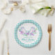 Looking for the perfect paper plates to celebrate your baby boy's first Easter? Look no further than our "My First Easter" paper plates! These adorable plates feature watercolor bunny feet and spring flowers on a blue spring plaid background, making them the ideal choice for your baby's first Easter party.