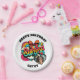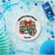 A fun surprise birthday party paper plate with a retro pop art comic book style in pink, yellow, teal giving it a vintage vibe. You can even add the birthday girl's name and photo in the personalize area.