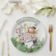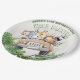 Serve up adventure with this jungle-themed birthday party plate! Featuring a cheerful safari jeep packed with friendly animals; monkey, elephant, giraffe, lion, and zebra, surrounded by lush tropical leaves, this plate sets the scene for wild fun and festive feasting.