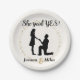 Celebrate the unforgettable “Yes!” with this personalized engagement party plate, featuring a romantic proposal silhouette and elegant script design. Fully customizable with names, this plate adds a meaningful and stylish touch to your engagement party, bridal shower, or proposal celebration.