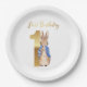 Peter el Conejo en un fondo azul con el texto de "Primer cumpleaños" dorado con el número uno de oro