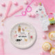 A hand drawn cute pink petting zoo party animals design featuring illustrations of a goat, goose, hamster, llama, pig, baby chick, cow and rabbit . A beautiful petting zoo themed design ideal for kids petting zoo themed birthday parties. Customize this cute petting zoo animals birthday paper plate and make it your own!