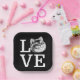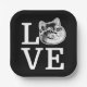 ¿Plato de papel de gato para los cheesesteaks en South Street o Broad Street? Mashup del famoso meme del gato respiro y la estatua del amor de Philly. Color blanco y negro.