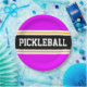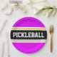 Este diseño deportivo presenta texto PICKLEBALL en negrita dentro de una amplia franja de carreras horizontal en el centro de color negro resaltada con piñones gemelos blancos flotantes contra rayas externas brillantes de color rosa tropical. El texto se puede personalizar.