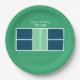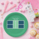 Creative pickleball birthday party or sports event plates featuring pickleball court and ball. To personalize edit text to add his or her name.