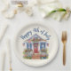 ¡Celebra con estilo este patriótico plato de papel de barbacoa del 4 de julio! Con una encantadora casa suburbana adornada con banderas estadounidenses, este diseño captura perfectamente el espíritu estadounidense del Día de la Independencia. El texto completo del personalizable le permite personalizar los detalles para que su evento sea verdaderamente inolvidable. Ya sea que esté hospedando a la familia, amigos o todo el vecindario, esta vibrante decoración del 4 de julio marca el tono perfecto para una celebración llena de diversión.