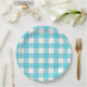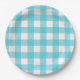Plato De Papel Picnic de verano de Gingham azul turquesa y blanco