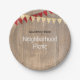 Este plato de picnic del barrio presenta un diseño rústico con un fondo de madera. Este plato está acentuado con banderas rojas y amarillas de enlucido. Personalice estos platos con el nombre de su calle o barrio.