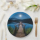 Plato De Papel Pier de noche bajo una luna llena