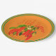 Pimientos picantes rojos sobre fondo de terracota con el texto rojo "Hot Chili Peppers" estilo mexicano. Perfecto para el fiesta donde se sirve comida mexicana. El borde de dos anillos verdes realza el color de barro. Pimientos de chile con hojas verdes sobre la vid con flor pequeña. Todas las obras de arte realizadas por PatriciaVilla con láminas de pintura.
