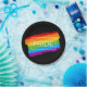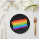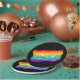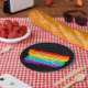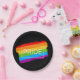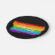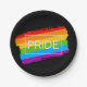 Esta obra de arte presenta un arcoiris colorido con la palabra Orgullo.