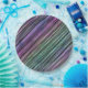 Gradiente suave líneas de trazo holo-arco iris contra un fondo negro.