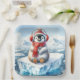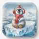 Plato De Papel Pingüino navidad En Copos De Nieve