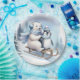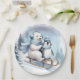 Un oso polar y un pingüino llevan velos y bufandas, montando alegremente una pista en pendiente nevada con copos de nieve.