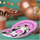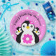 Celebra su primer cumpleaños con este diseño caprichoso, que incluye adorables pingüinos en forma de huevo, con flores rosas en un fondo rosado estrellado. Diseño © W.H. Sim. Ver más en zazzle.com/expressionsoccasions