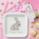 Plato De Papel Pink and Blue Wildflower Easter Rabbit