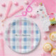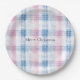 Plato De Papel Pink Blue White Plaid Stripes Christmas