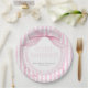 This pink bow baby shower coquette striped baby shower paper plate design features soft pink stripes, a large bow and ribbons, and delicate frame details. Perfect for a feminine celebration, it creates a charming, preppy, and elegant look that feels sweet, stylish, and timeless. Created by Simply Farmhouse Press.
