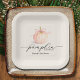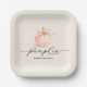Una calabaza linda atada con una elegante cinta rosada resalta estos chicas de la ducha de bebé, suaves platos de papel cuadrado de marfil con "Una calabaza está en camino" y el nombre de la madre. (Disponible también en azul y marfil.) COINCIDIENDO elementos de nuestra colección.