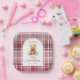 These fun birthday paper plates, featuring a cute teddy bear witha pink bow, on a tartan plaid background, can be personalized with all your special birthday party details. Designed by Thisisnotme©