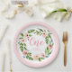 Plato De Papel Pink Floral Wreath Peony Primer Fiesta de cumpleañ