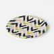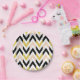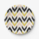 Platos de papel de diseño con un patrón de chevron de color purpurina falso, rosa color turquesa, blanco y negro.