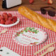 Placas de papel de cumpleaños de fresa de Gingham rosa