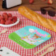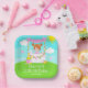 Este plato tierno y caprichoso cuenta con un chica de pelo rojo con piel clara en un puesto de limonada rosa decorado con flores y bonificaciones. En el fondo hay un cielo azul, sol y mariposas. El texto combina fuentes decorativas y sans serif para un estilo elegante y moderno. Esto es perfecto para una fiesta de cumpleaños de verano. Gráficos de MUJKA