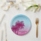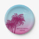 Plato De Papel Pink Palm Trees Tropical Evening Happy Birthday