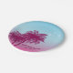 Add a dreamy tropical touch to your table with this pink and blue paper plate, designed by Destei. Two pink palm tree silhouettes rise against a pink-to-blue gradient sky, with three light blue birds flying above. Perfect for birthdays, beach parties and summer celebrations, these plates bring a playful, cheerful vibe to any occasion.