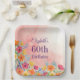 Plato De Papel Pink Watercolor Florals 60 cumpleaños