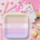 Añada un toque divertido y colorido a su celebración con este plato de cumpleaños cuadrado de gingham de gradiente pastel. La suave mezcla de rosa, amarillo, coral y lavanda crea un alegre y lúdico patrón de gingham que es perfecto para fiestas de cumpleaños y eventos especiales. Con una banda blanca de personalizable en el centro, puedes añadir fácilmente un toque personal con nombres y mensajes como "El Baby Shower de Alessandra" o "El primer cumpleaños de Jessica". Estos platos le aportan un toque elegante e inolvidable a su decoración fiesta, asegurando que su evento se destaque.