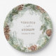 Eleva la recepción con nuestras placas de papel de pino verde, que forman parte de la elegante suite Boda de invierno Pinecone Greenery. Con vegetación pintada a mano y ramos de pino, estos platos le dan un toque cohesivo y elegante a su escapada de mesa, haciendo que cada detalle de su celebración se sienta especial.
