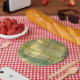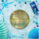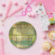 Plato De Papel Pintado abstracto dorado turquesa y verde