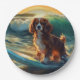 Plato De Papel Pintura Cavalier King Beach para surf