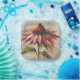 Una vibrante exhibición de pinceladas de pincel captura una flor de cono floreciente con pétalos rosados y hojas verdes, ambientada en un fondo texturado