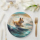 Plato De Papel Pintura finlandesa de Lapphund Beach Surfing