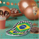 Placas de papel: Rústicas placas de fiesta brasileñas con bandera brasileña rodeadas de un patrón de manta de búfalo blanco y negro - amo a mi país, decoración festiva, patriotas nacionales / hinchas deportivos