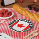 Placas de papel: Rústicas placas de fiesta de Canadá con bandera canadiense rodeada de un patrón de manta de búfalo blanco y negro - amo a mi país, decoración festiva, patriotas nacionales / hinchas deportivos