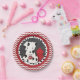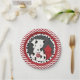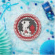 Este diseño del bombero hace juego nuestras invitaciones de la fiesta de la fiesta de bienvenida al bebé y de cumpleaños. Los sistemas de la dominación en el centro con una boca de incendios en el fondo y un círculo de la impresión roja y blanca del galón.