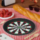 ¡Bullseye! Este diseño de pizarra es perfecto para eventos temáticos de dardos. Este diseño presenta un tablero de guiones de estilo clásico con segmentos rojos, verdes, negros y blancos, con un texto personalizado en la parte superior e inferior del tablero con un tipo de letra blanco.