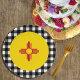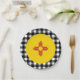 Placas de papel: Rústicas placas de fiesta de Nuevo México con bandera de Nuevo México rodeadas de un patrón de manto de búfalo blanco y negro - amo a mi país, decoración festiva, patriotas nacionales / hinchas deportivos
