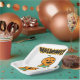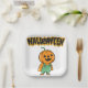 ¡Un diseño lúdico que trae vibraciones de Halloween al fiesta! El plato de papel presenta el clásico símbolo de Halloween titulado "¡Fun Halloween fantasmal!" El centro está escrito con un tipo de letra audaz e intimidante, con una divertida mezcla de letras tibias y vagas. El plato también puede tener estampados sutiles como el maíz dulce para un toque festivo extra.