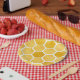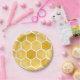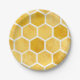 Placa de papel amarillo. Placa de papel de patrón de abeja / hexágono.