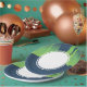 Añade un toque de estilo Art Déco a tu cena de ensayo, a tu ducha de novia, o incluso a un boda o evento de temática invernal más informal con estos platos de papel, con un borde azul decorado con una aurora estilizada. Una sección central con bandas blancas crea un acento agradable. No olvide visitar los otros productos del Winter Wonderland Auroras para crear una imagen verdaderamente coordinada para su evento.