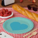 Este plato tiene un corazón de color turquesa. Ideal para una ducha de bebé, cumpleaños o novios.