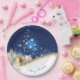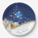 Esta elegante placa de papel blanco azul presenta adornos dorados y blancos de Navidades con una cuerda dorada de perlas y un estilizado árbol de Navidad. Personalízalo con tus propias palabras.