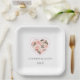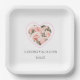 El plato de papel boda se muestra con una hermosa estampación floral rosa rosada en forma de corazón. Personalizar este elemento y cambia el texto de ejemplo al suyo con esta plantilla. Imprimir con licencia